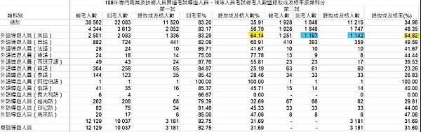 妮塔覺得要過口試不會太難,來看看考選部的數據吧,這是今年的結果。